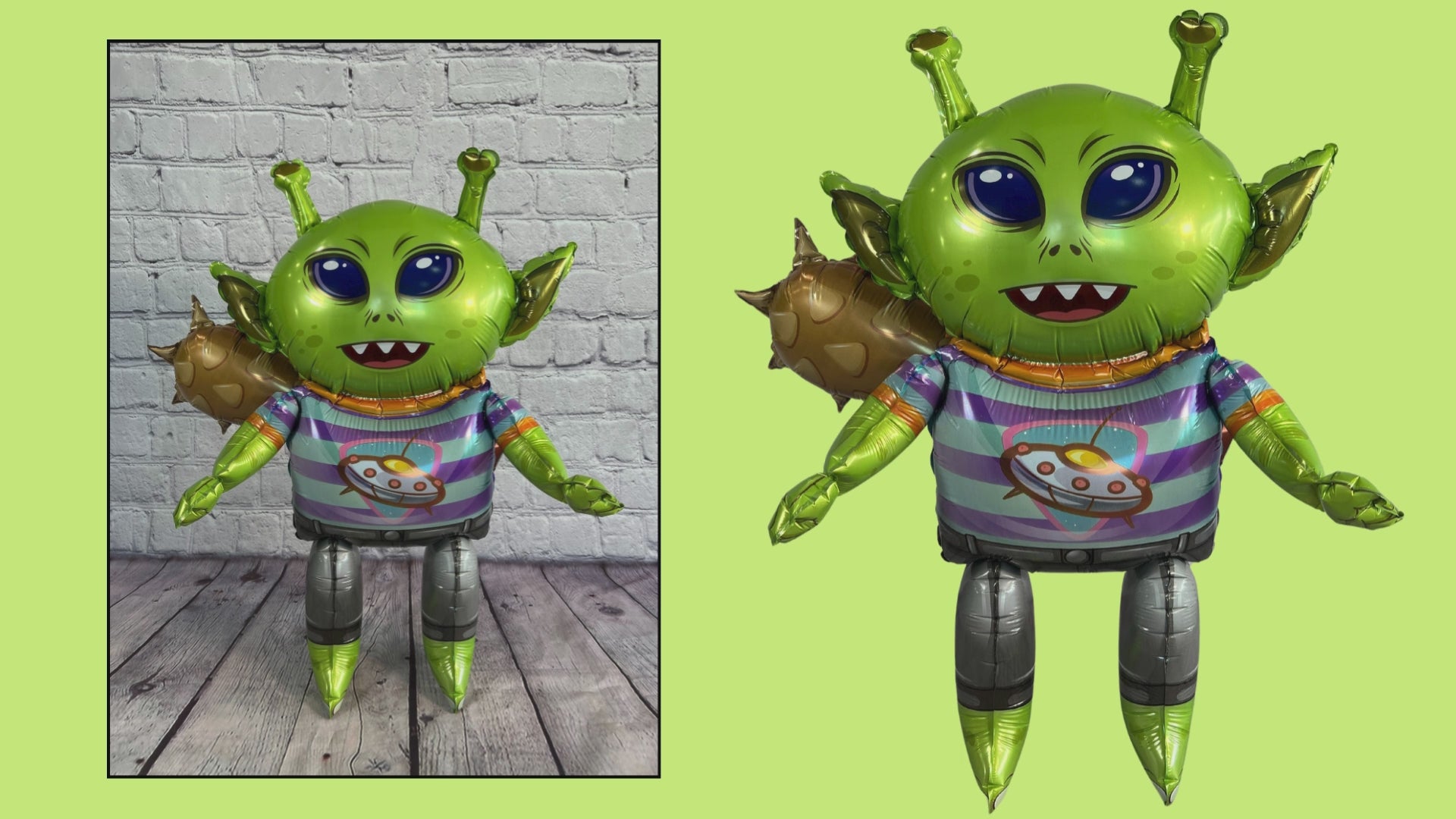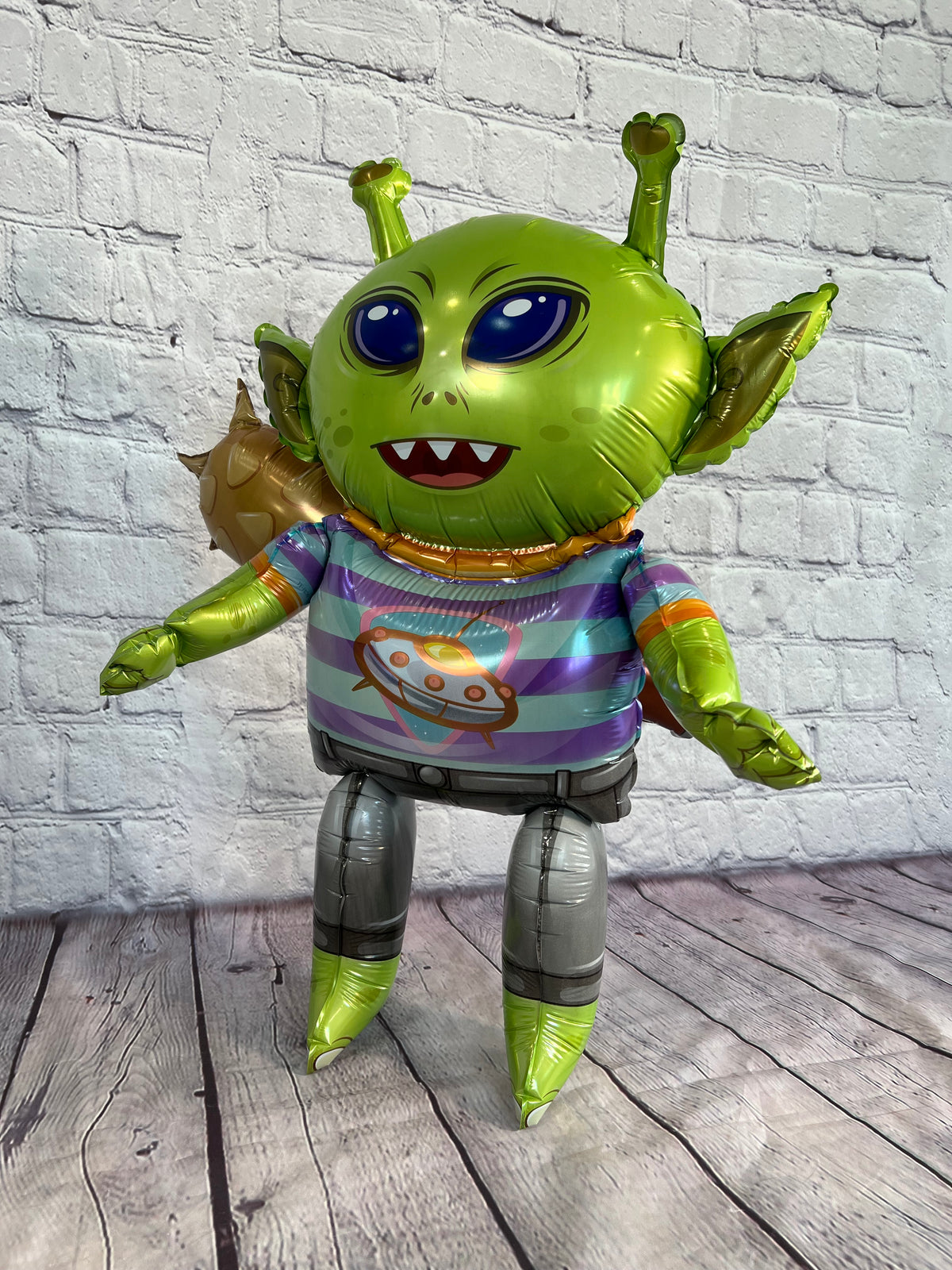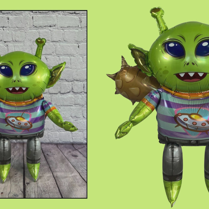 Freestanding alien with spikey club attached to his back. Make your child's next birthday out of this galaxy with an invasion of cute aliens.