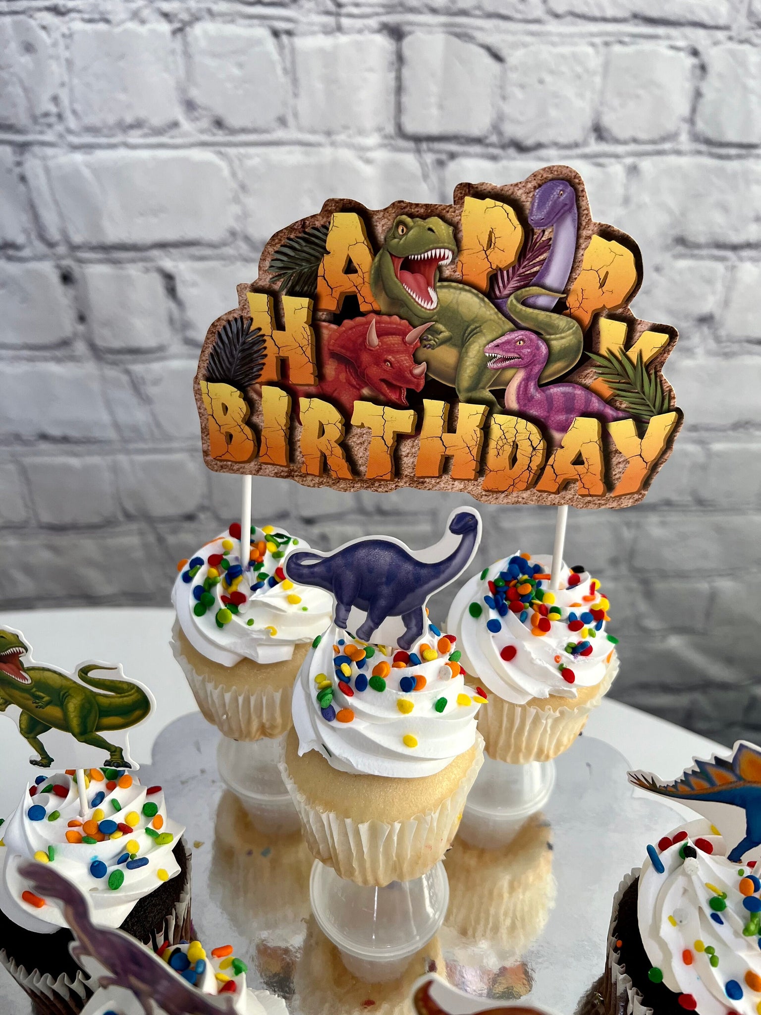 Adorable dinosaur cupcake toppers! The perfect addition to your dinosaur themed birthday party!