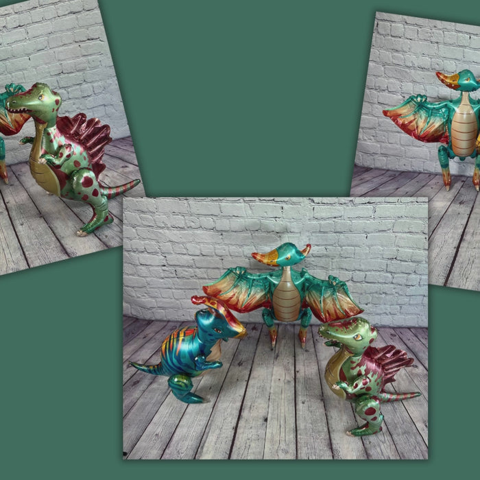 -3 Premium 4D JUMBO inflatable dinosaur mylar balloons.