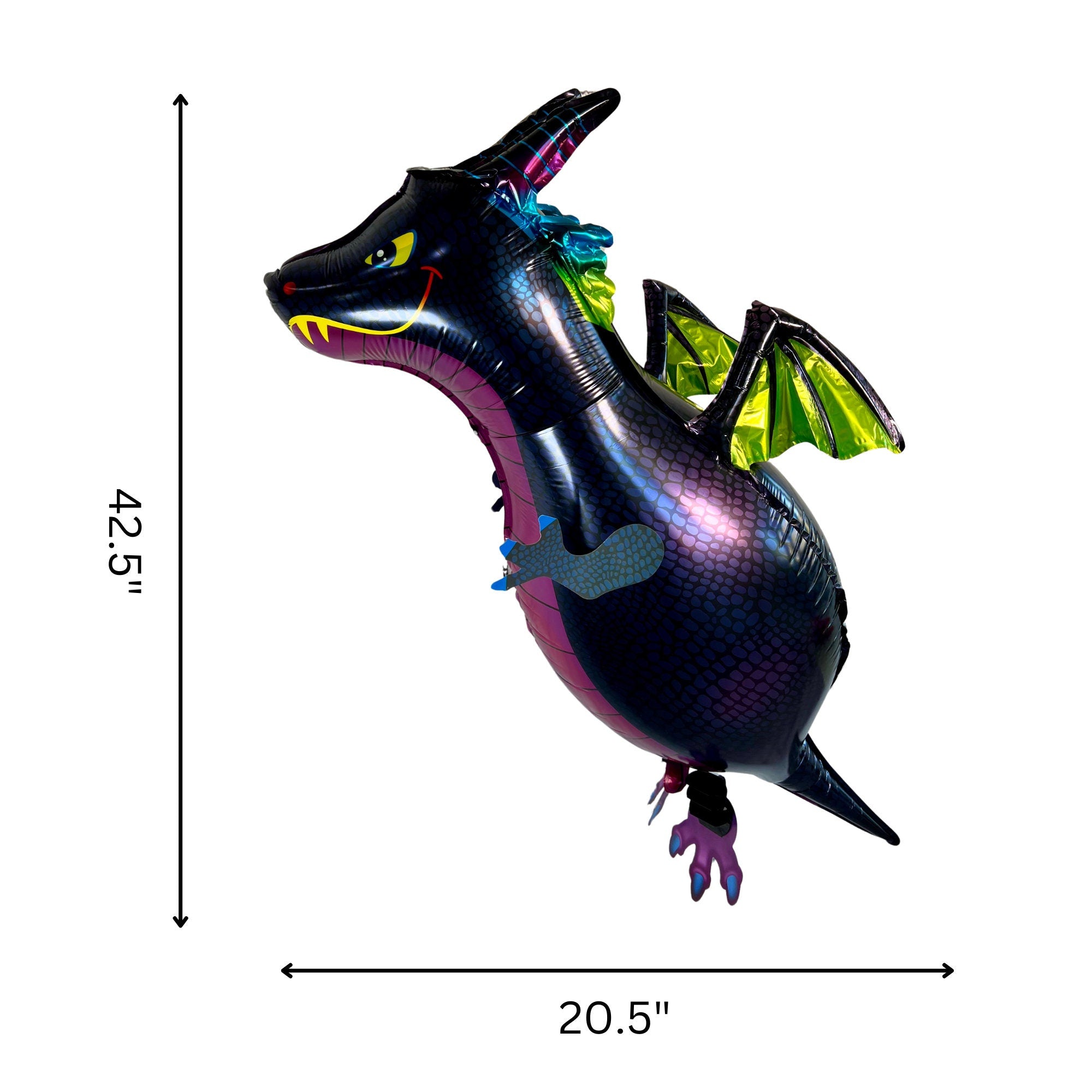 The JUMBO SIZED, self-sealing, foil dragon balloon is approximately 42.5" x 20.5".