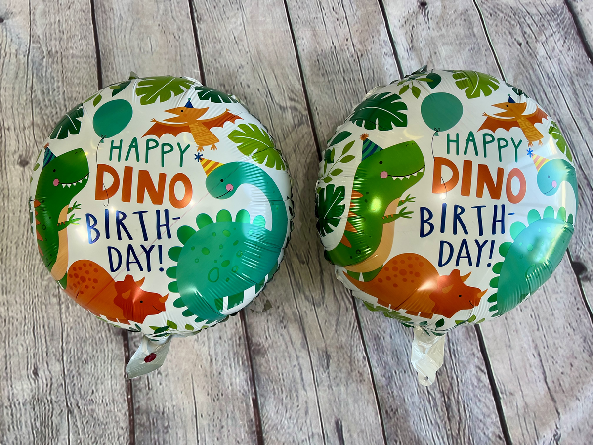 *2 "happy dino birthday" round foil balloons (18")
