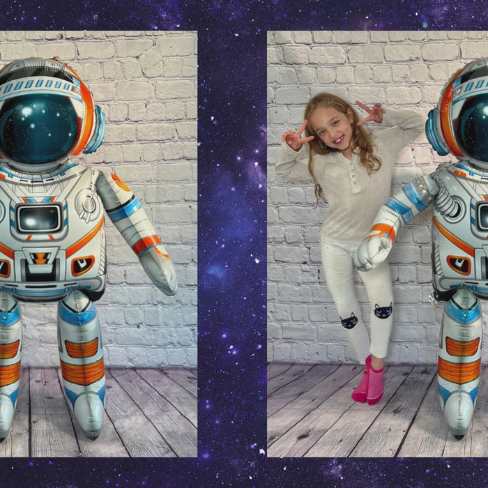 • Jumbo standing 4D astronaut balloon creates a large themed focal point for outer space and astronaut birthday parties