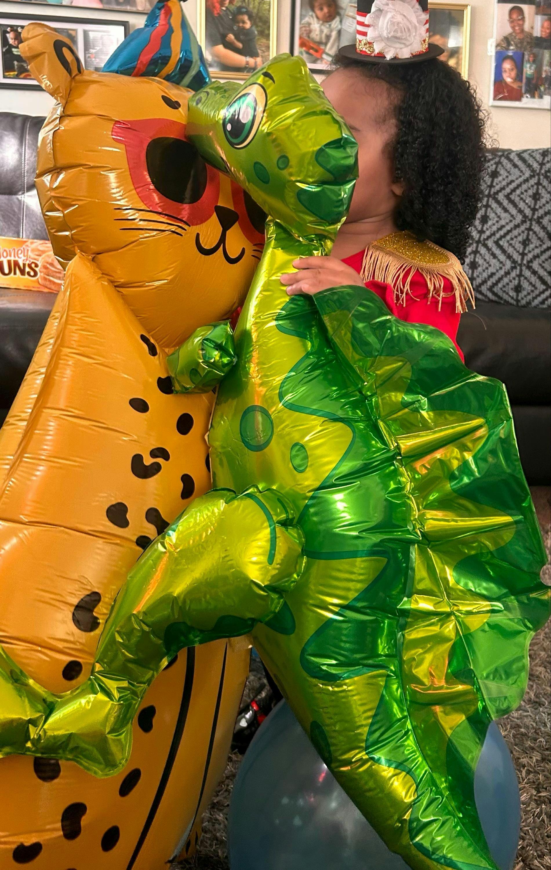 The JUMBO SIZED DINOSAUR in this package is a mylar balloon approximately 29"L x 23.5"H.