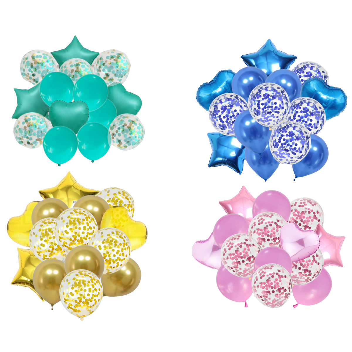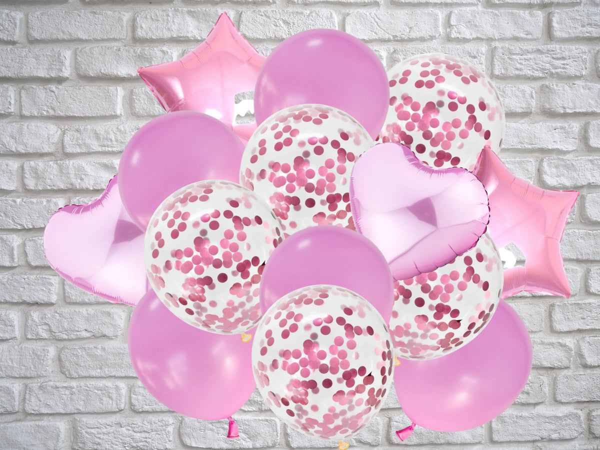 • Balloon bouquet kit includes heart and star foil balloons plus confetti and solid latex balloons with ribbon