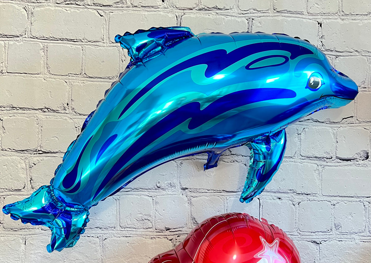 • Features mermaid balloons about 30.7"x18.9" and dolphin balloons about 39"x27.5"
