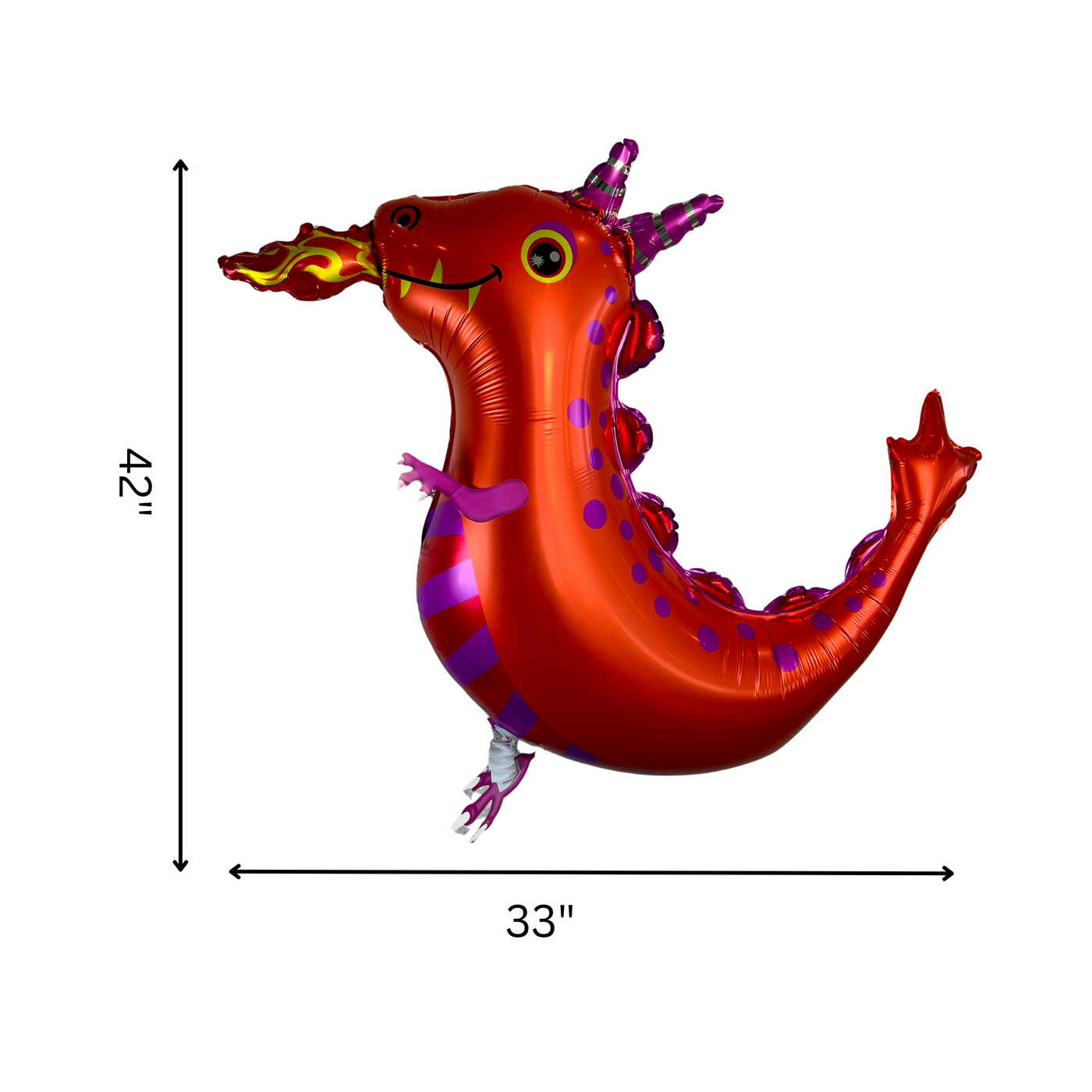 The JUMBO SIZED, self-sealing, foil dragon balloon is approximately 42" x 33".