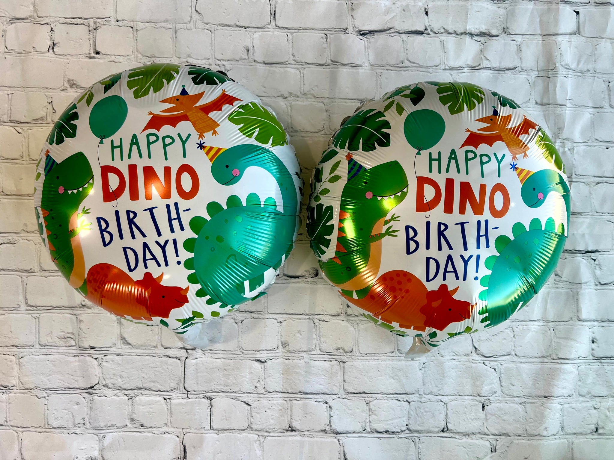 *2 "happy dino birthday" round foil balloons (18")