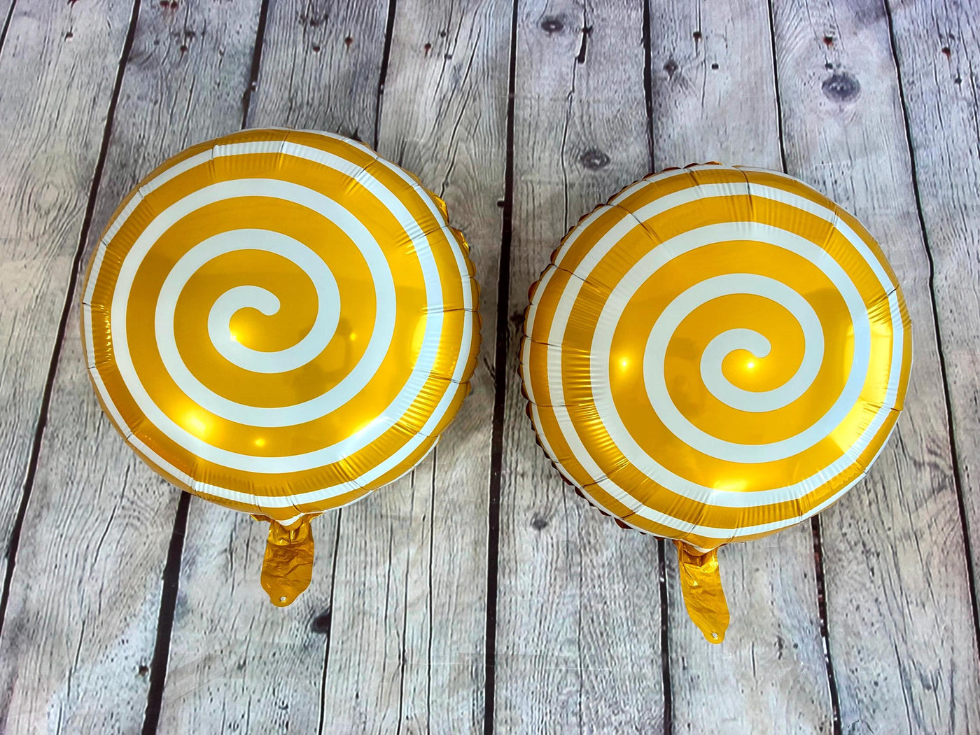 -2 Yellow swirl round foil balloons 18"